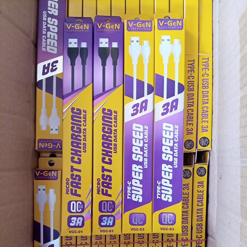 Handphone & Aksesoris > Kabel, Charger, & Konverter > Kabel & Adaptor Handphone > Kabel Data V-gen 3A Packing