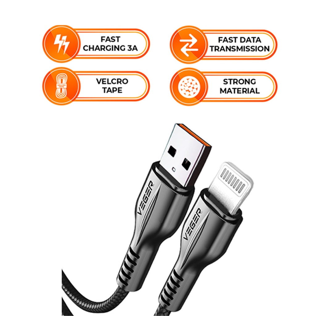 Detail Kabel Data Veger VG18 Lightning For Iphone & IPad fast Charging 3.0A 1000mm Original