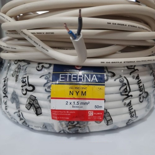 Kabel ETERNA NYM 2x1,5 mm Kabel Listrik Tembaga Kuningan SNI / Kabel Instalasi Kabel Tunggal