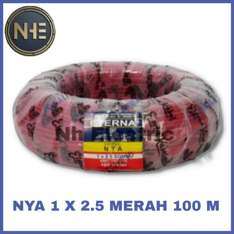 Merk : Eterna Warna : Merah Ukuran : Nya 1x2,5mm Panjang Kabel : 100 Meter Isi Kabel : 1 Arus/Jalur Ukuran Kawat : 2,5mm Tembaga LMK SNI Harga Yang Tertera Adalah Untuk 1Roll 100Meter