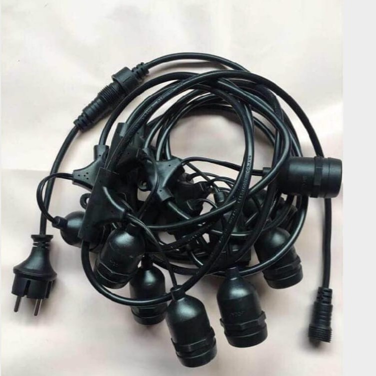 READY STOCK Kabel Fitting Lampu Cafe -10 meter: fitting 10 pcs -20 meter:fittibg 20 pcs -30 meter :fitting 30 pcs -40 meter :fittibg 40 pcs *cocok untuk dekorasi cafe ..pesta kebun *Bahan kabel tembaga *Warna kabel hitam *Lapisan luar plastik suoer tebal *Dapat digunakan untukbindoor maupun outdoor..aman kena air air hujan langsung *Fitting srandart lampu rumahan *Ada sambungan * BELUM TERMASUK BOHLAM LAMPU