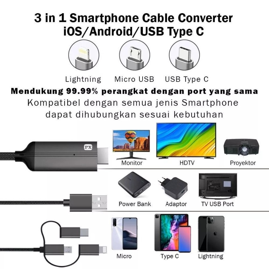 Product : PX MHA130 Type C / Lightning / Micro USB Smartphone To TV Converter