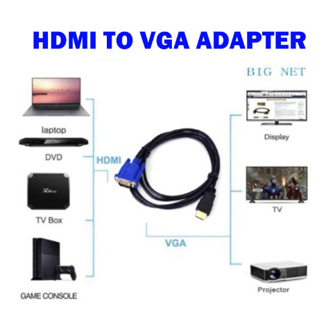 Spesifikasi: 1. Panjang: 1.5Meter 2.Konektor: HDMI male ke VGA male. Spesifikasi: 1. Panjang: 1.5Meter 2.Konektor: HDMI male ke VGA male.