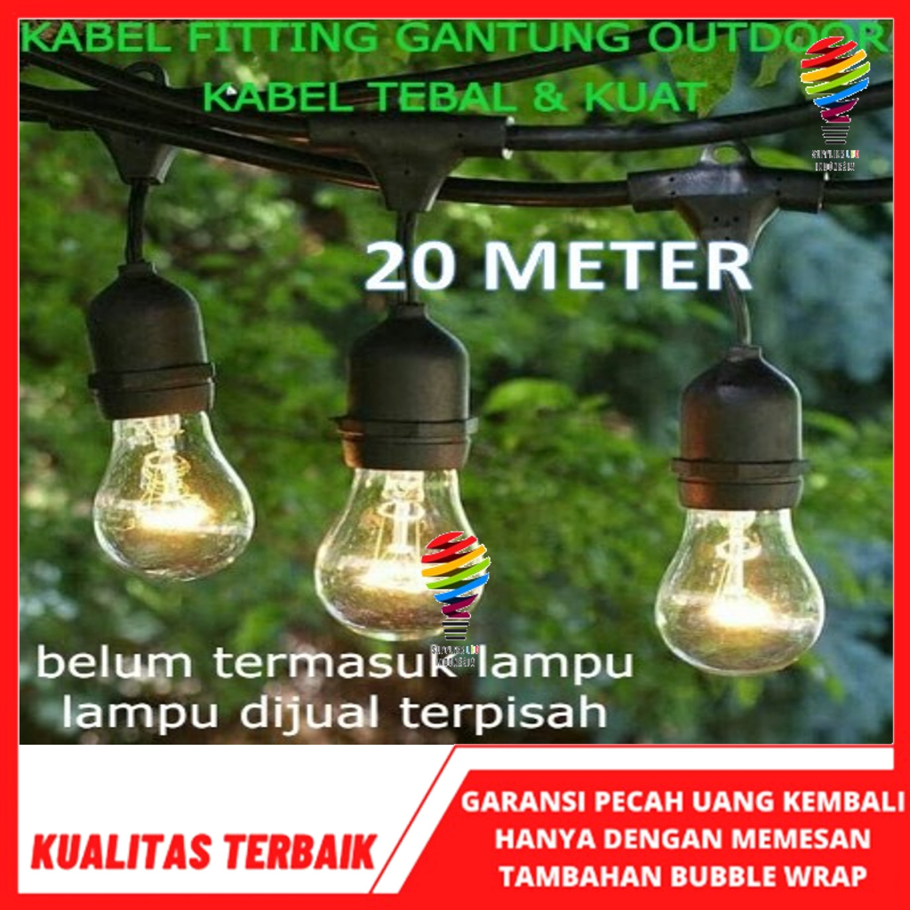 Detail KABEL LAMPU GANTUNG CAFE OUTDOOR 20 METER 20 FITTING FULL LAMPU GANTUNG FITING E27 20M 20F