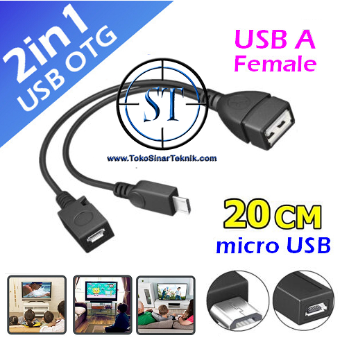 OTG Y Micro USB to USB Female plus Micro USB Female untuk tambahan power ke hardisk.