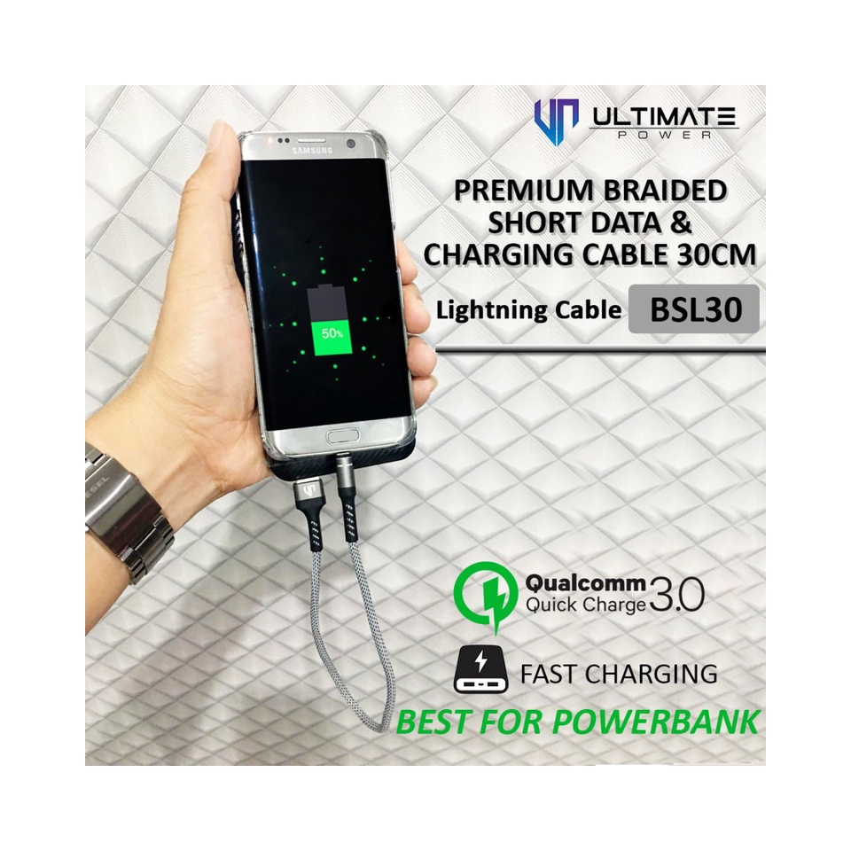 Detail Kabel Power Bank IOS Lightning 30CM Ultimate Power Premium Braided Original