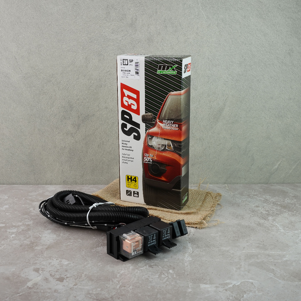 Paket Penjualan Relay Set BOSCH SP Series : - 2 Set Relay Bosch 12v + Soket - 1 Set Relay MX 12v + Soket - 2 Set Sekring + Soket, - 3 Set Kabel Output H4 - Petunjuk cara pemasangan