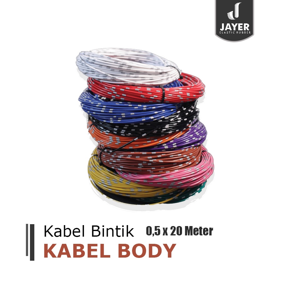 Kabel bintik ini memiliki ukuran serabut 0.5 mm dan Cukup baik digunakan untuk kabel body, lampu dan fungsi lainnya pada kendaraan dan mesin.