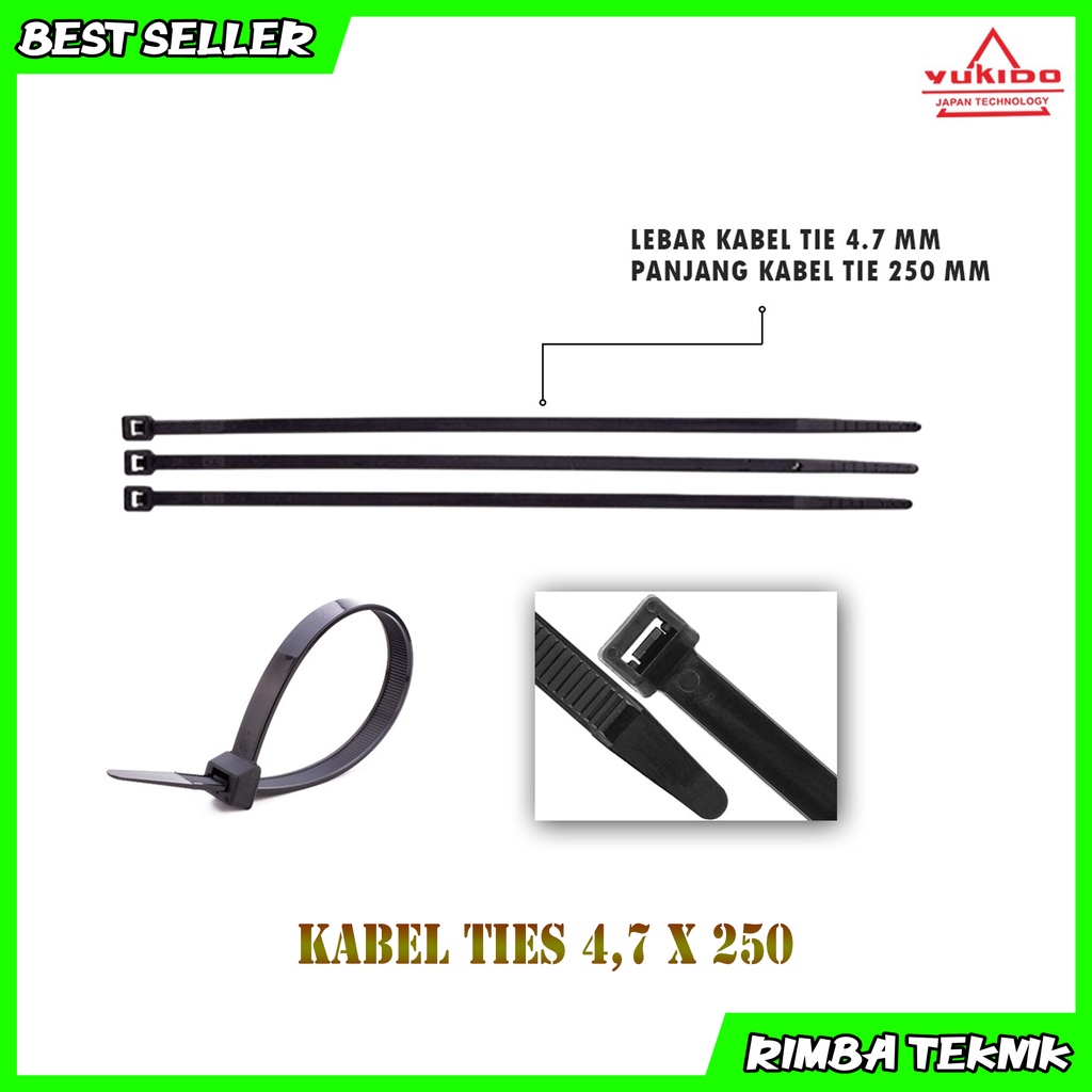 Detail Kabel Ties Hitam 4.7x250mm / 25cm 1 Pack Isi 100pcs Cable tie/kabel tis Nylon