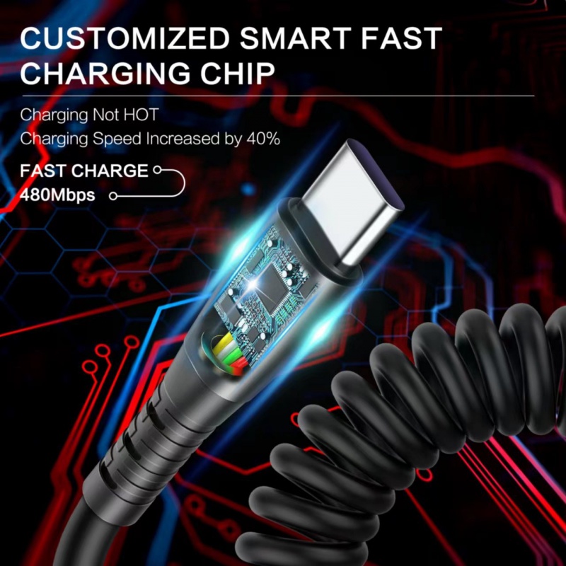 Handphone & Aksesoris > Kabel, Charger, & Konverter > Kabel & Adaptor Handphone > Kabel Usb Charging Kabel Data Spring Stretch Untuk IPhone Android Type-c Usb Charger Kabel Data