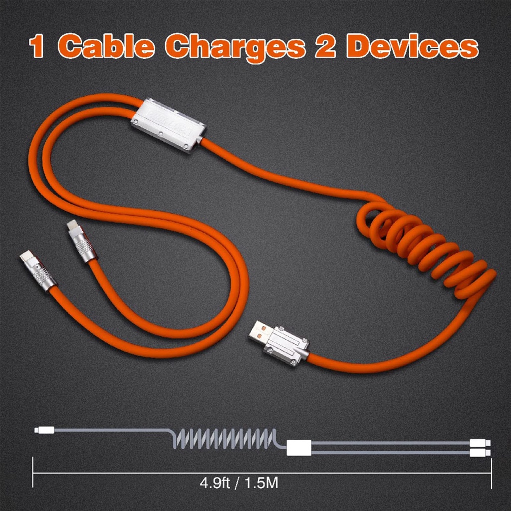 Detail Kabel USB Musim Semi 6A 120W 2in1 Untuk iPhone Type-C Charger Cepat Kabel Data USB Yang Dapat Ditarik