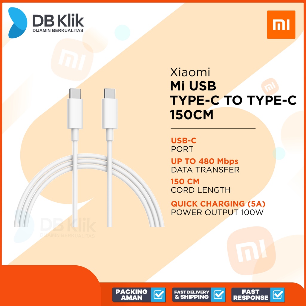 Xiaomi Mi USB Type-C to Type-C Cable 150cm mendukung berbagai perangkat. Kabel Mi USB Type-C ke Type-C dapat mengisi daya berbagai perangkat pintar yang dilengkapi dengan port USB-C. termasuk laptop, tablet, smartphone, konsol game, dan lainnya.