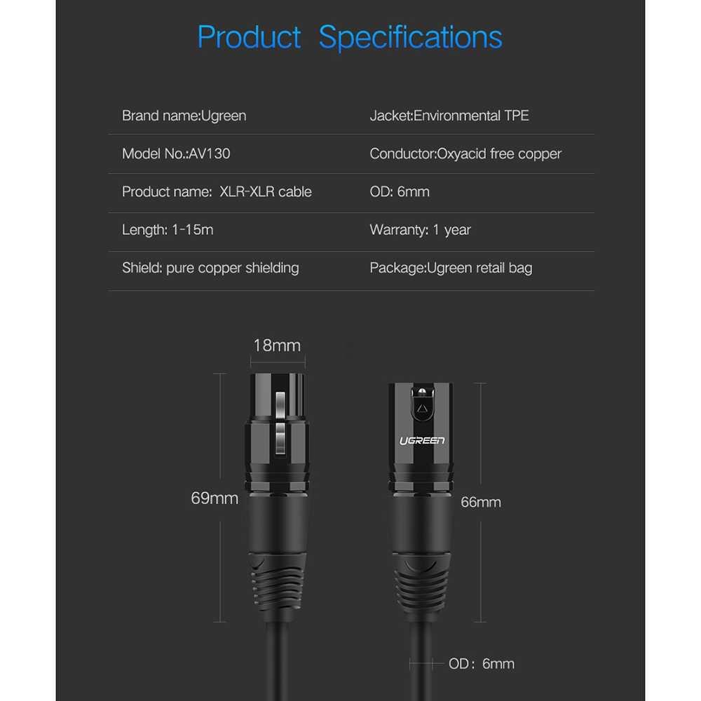 Spesifikasi UGREEN Kabel XLR Karaoke Microphone - 20710/20711 Warna : Hitam Tipe Plug Audio : XLR Material : TPE Dimensi : Panjang Kabel: 2 Meter