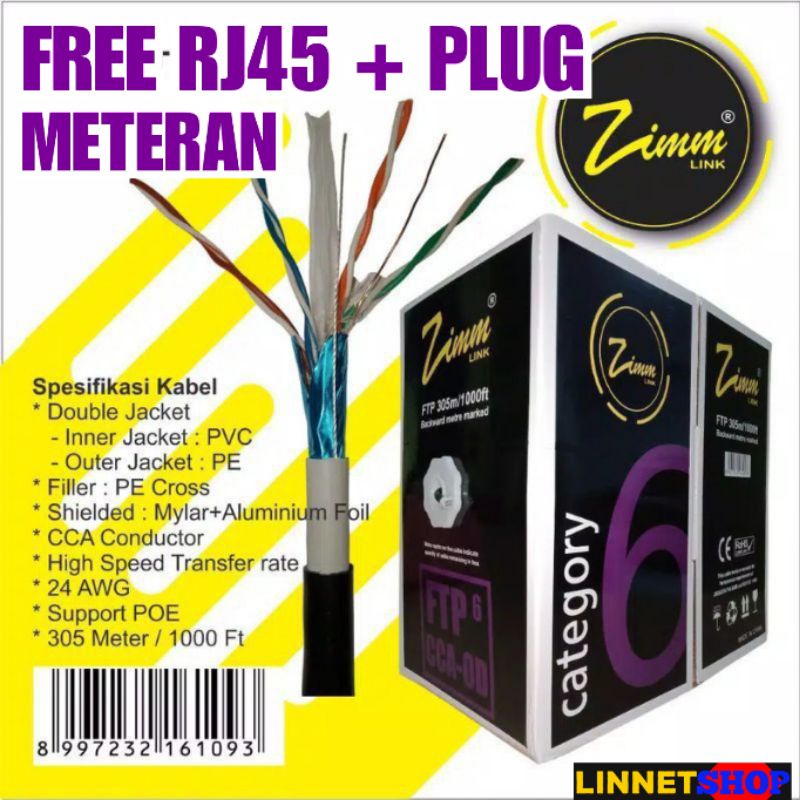 Kabel Lan FTP Cat 6 Double Jaket Zimmlink Tanpa Konektor