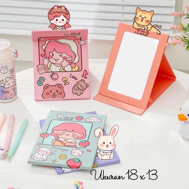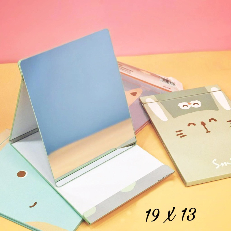 Type : Cermin rias lipat model buku ready banyak motif Ukuran keseluruhan 18cm x 13cm Tidak mudah retak seperti kaca traveling lain nya, Tampilan cover lucu dan mudah dibawa kemana saja