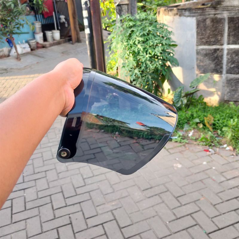 Otomotif > Aksesoris Pengendara Motor > Helm & Aksesoris Pengendara Motor > kaca Helm flat Visor iridium blue helm Bogo / retro mudel 3 kancing kaca helm model venom
