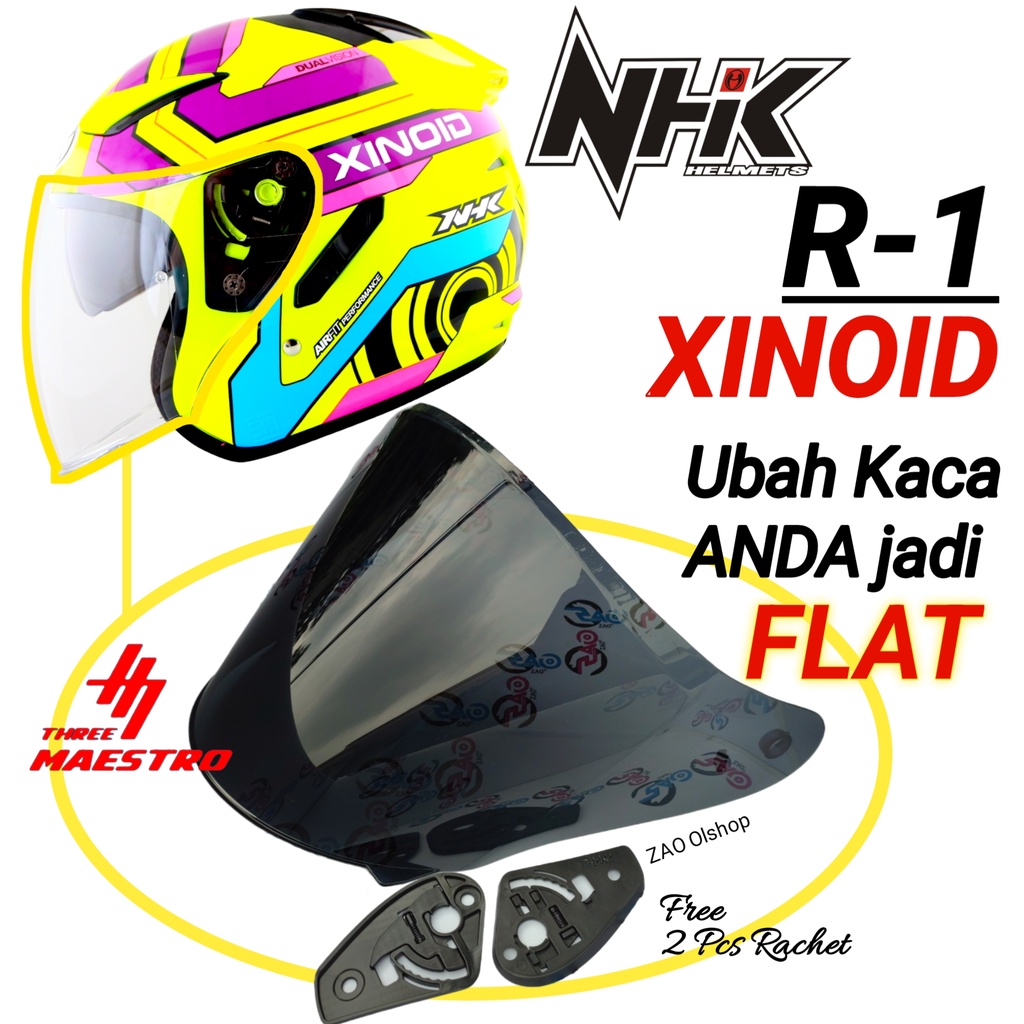 Detail Kaca Helm Flat Visor NHK R1 XINOID visorflat nhk r-1 xinoid r1 flat rone clear putih smoke Iridium blue/ iridium red/ iridium silver/iridium gold tm4