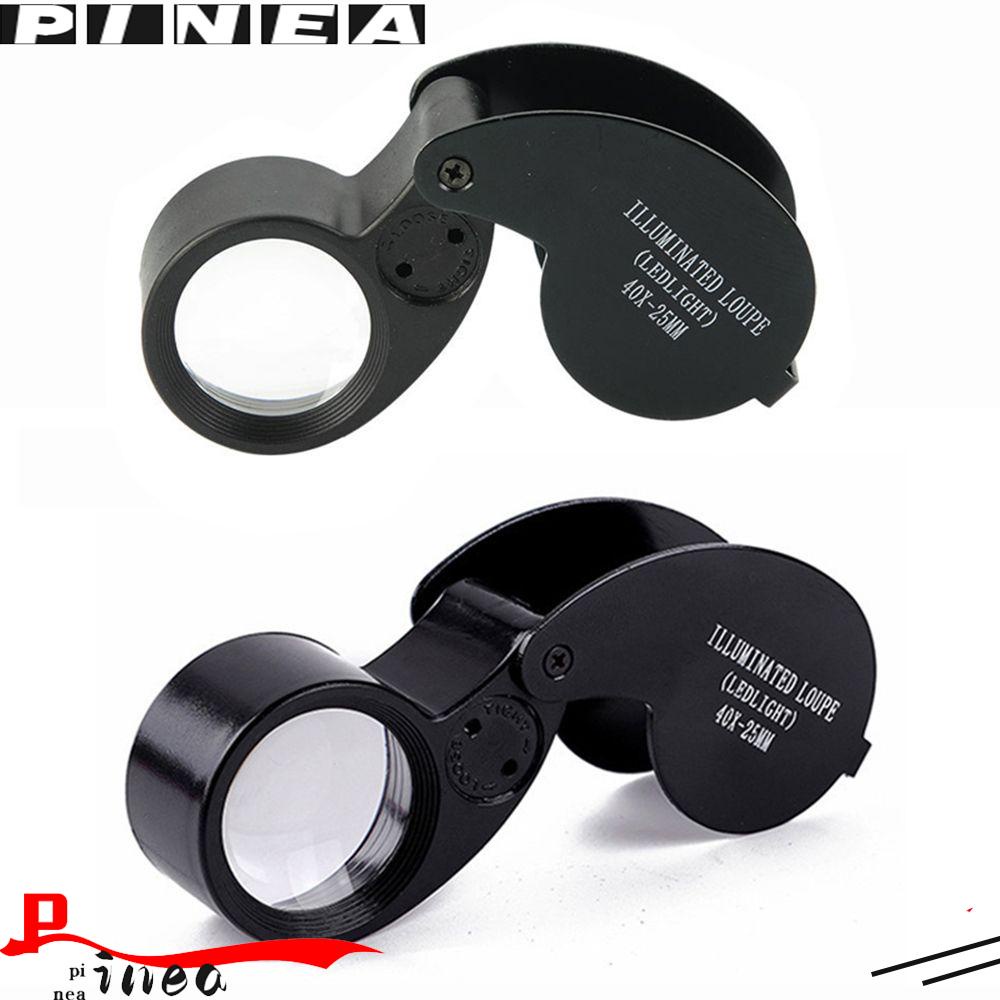 Pembesar MINI 1x 1x pembesar MINI Pembesar Kaca Pembesar 2 LED Diameter Lensa Pembesar Lipat 25mm Saku Iluminasi Loupe 40X MINI Untuk Perhiasan Penghargaan Giok