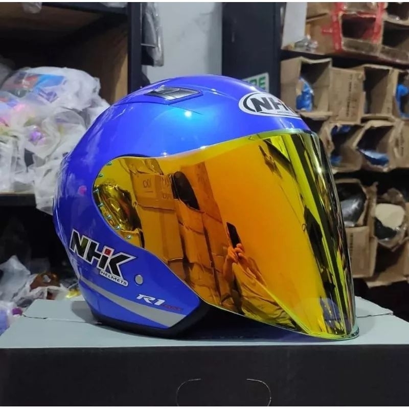 Detail KACA VISOR FLAT NHK R 1 R1 IRIDIUM SILVERBLUEGOLD TANPA GANTI RACHET