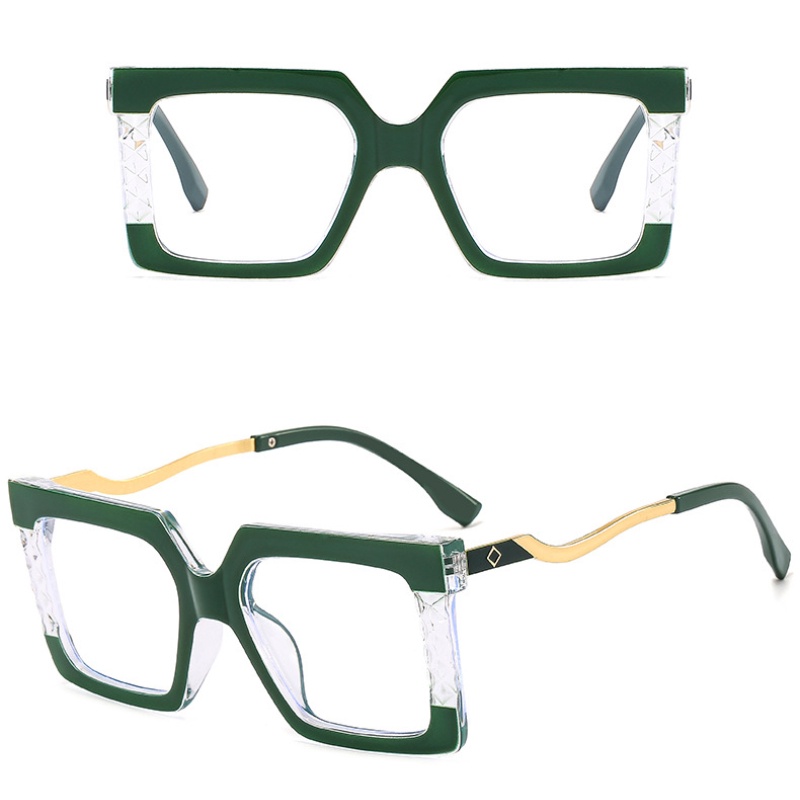 Aksesoris Fashion > Kacamata & Aksesoris > Frame & Lensa Kacamata > Kacamata Anti Blue Light Bentuk Persegi Oversized Bahan Metal Warna Kontras Untuk Wanita