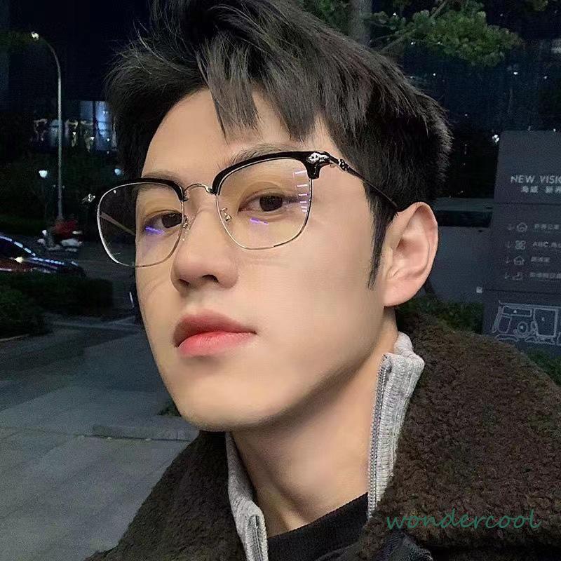 🌈Selamat datang di "wondercool"! ❤Best service ❤jaminan kualitas 100% ❤Selamat berbelanja, kepuasan Anda adalah pengejaran kami! "Kacamata Optik Anti Cahaya Biru" Kacamata Optik Mode Bingkai Tontonan Pria Bisnis Logam Setengah Bingkai