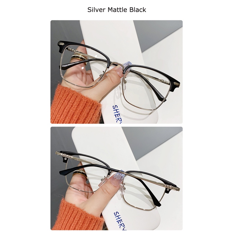 Detail Kacamata Anti Radiasi Half Frame Bisnis Untuk Pria Wanita Lensa Yang Dapat Diganti Logam