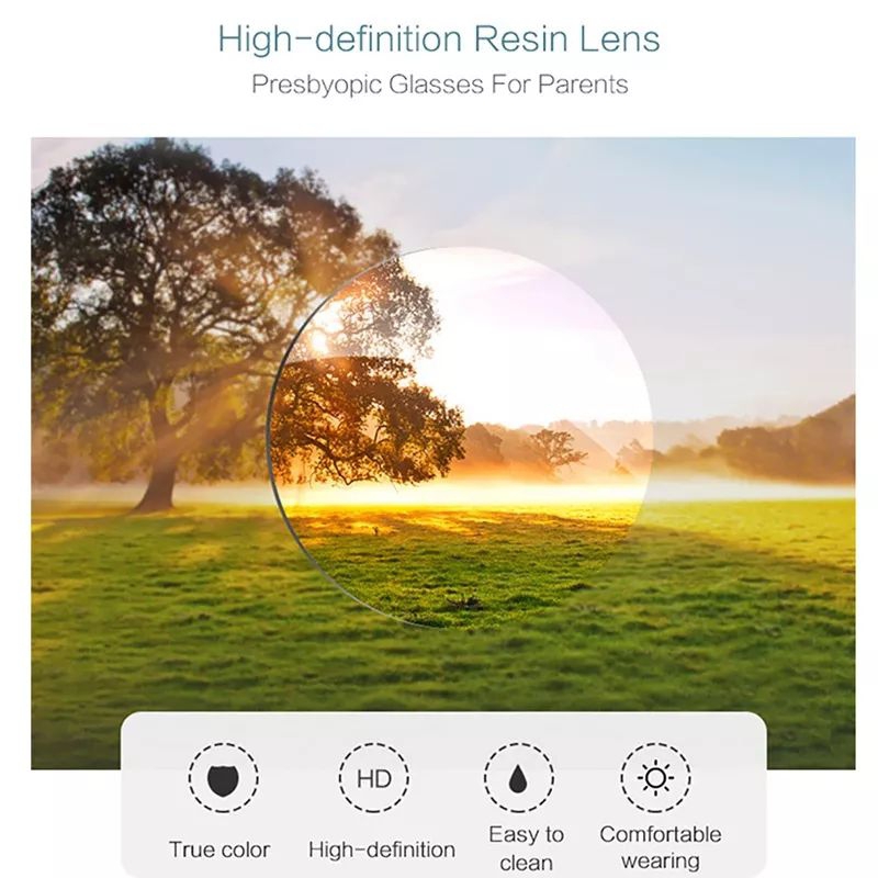 Lensa resin terbuat dari bahan organik, transmisi cahayanya 84% - 90% yang bagus untuk membuat lensa dalam penglihatan jernih. Lensa resin optik memiliki ketahanan kuat terhadap benturan daripada kaca, lebih tipis, lebih ringan dari kaca.