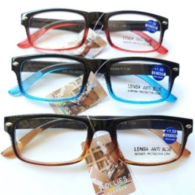 GRATIS BOX + KAIN LAP !!! Kacamata Baca untuk melihat objek dekat agar lebih jelas Lensa AntiBlue untuk menhindari mata dari tadiasi sinar HP / Komputer Frame dan Tangkai dengan variasi warna Gradasi Ringan dan nyaman dipakai untuk Pria dan Wanita Ready dari ukuran Plus 100 sd Plus 300 +100 +125 +150 +175 +200 +225 +250 +275 +300