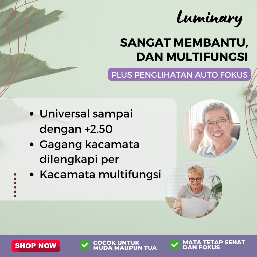 Kacamata Baca Plus Auto Focus Unisex Universal Cocok untuk pria maupun wanita, muda maupun tua. Design trendy dan modis Universal dapat di gunakan untuk Mata +0,5 sampai + 5,5