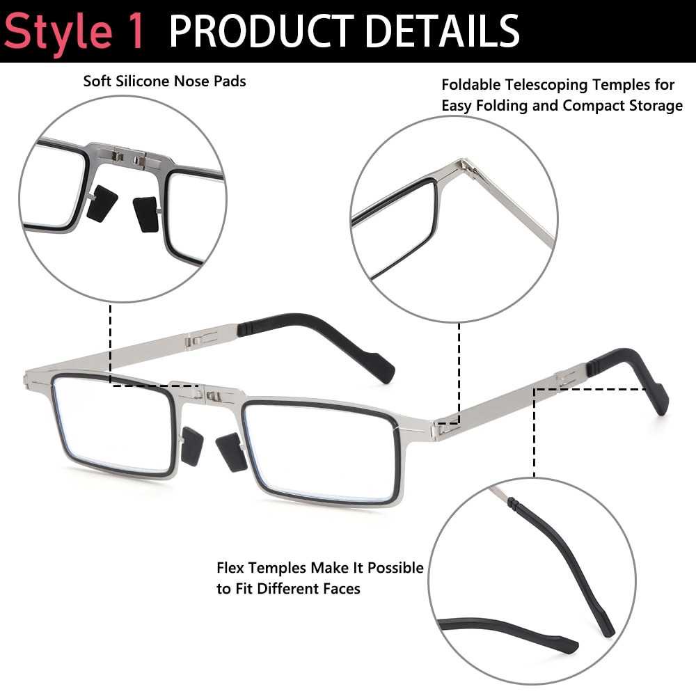 Desain Lipat Memiliki desain yang lipat yang mana kacamata dapat dilipat menjadi kecil dan dimasukkan ke dalam kotak kacamata yang tersedia. Desain ini membuat kacamata gampang untuk dibawa bepergian dan digunakan kapan saja Anda butuhkan.