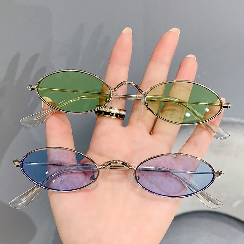 Detail Kacamata Bentuk Oval Kecil Warna Hitam Merah Bahan Metal Gaya Retro Vintage Untuk Wanita