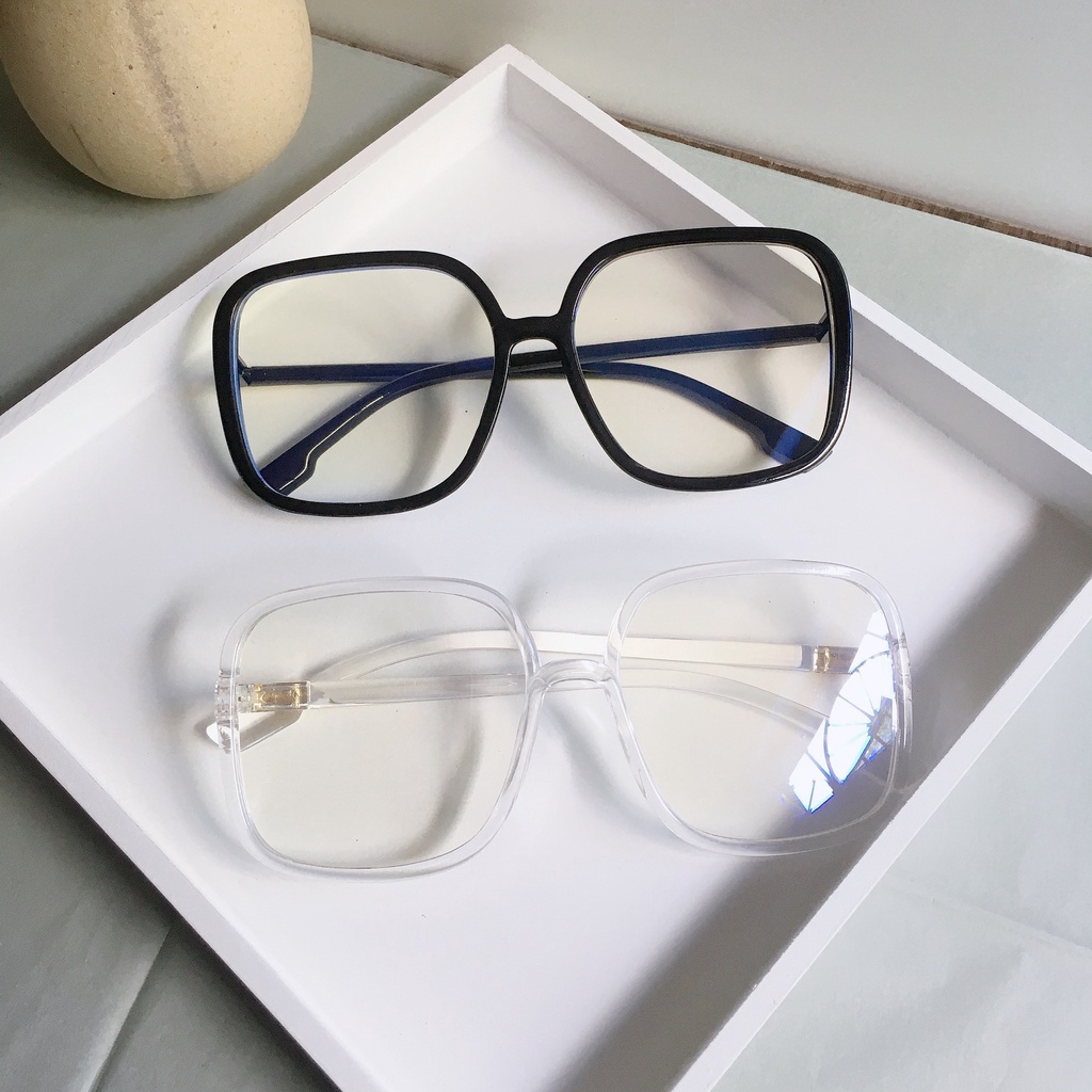 Detail Kacamata Bingkai Persegi Warna Solid Cermin Cahaya Datar Tren Fashion Sederhana