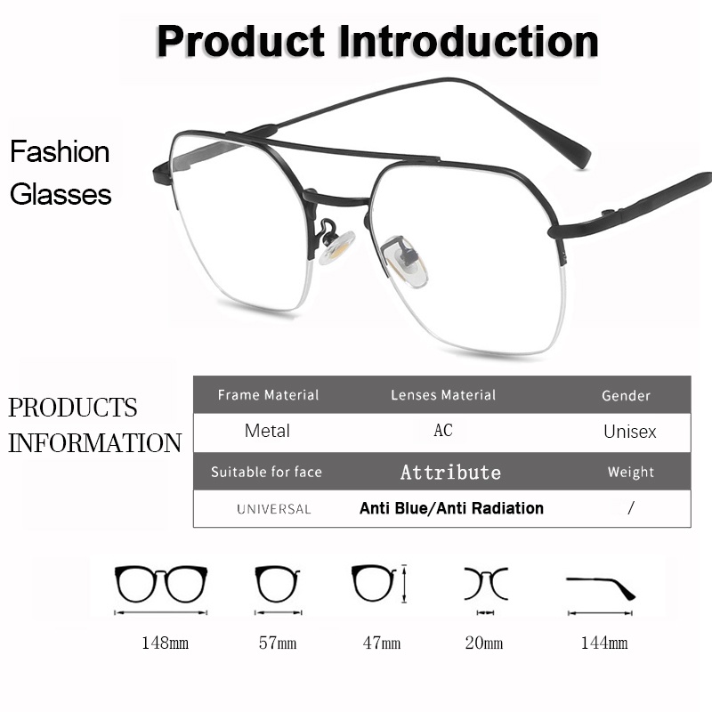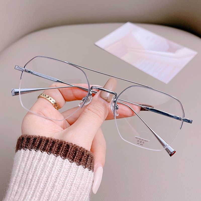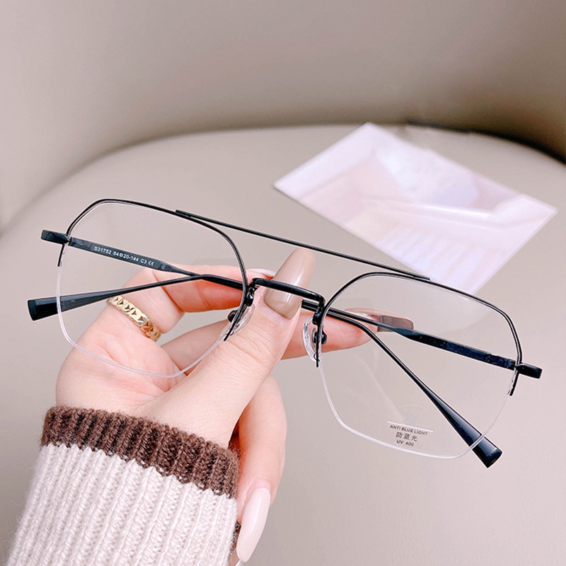 Detail Kacamata Bisnis Anti Blue Light Pilot Frame Untuk Pria Fashion Frame Lensa Bening