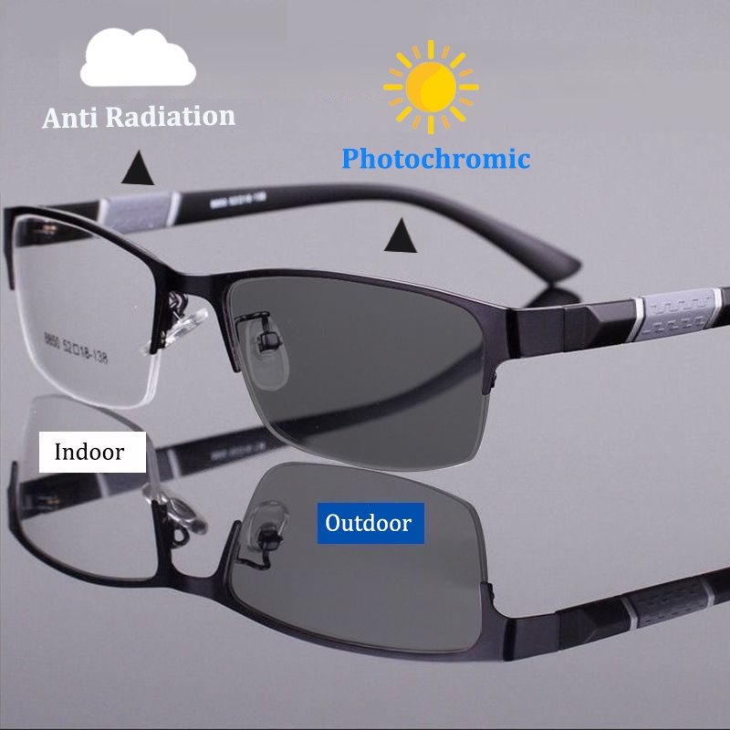 Detail Kacamata Bisnis Photocromic Anti Radiasi Untuk Pria Wanita Half Frame