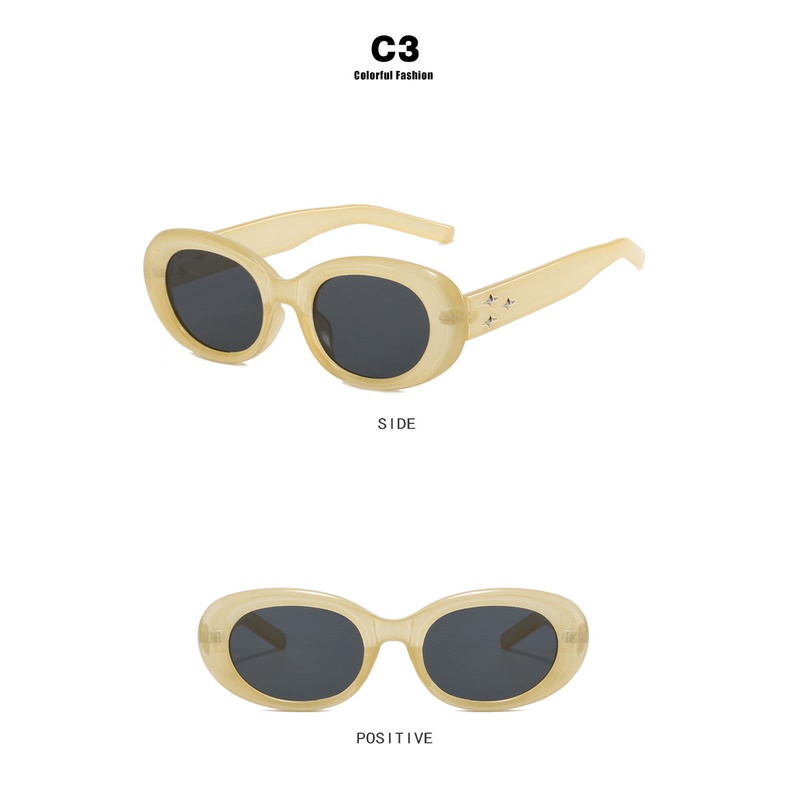 Detail Kacamata Hias Bintang Y2K Wanita Pria Frame Oval Perlindungan UV