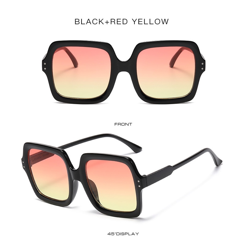 Detail Kacamata Hitam Bentuk Kotak Besar Warna Hitam Gradasi Gaya Vintage Untuk Wanita