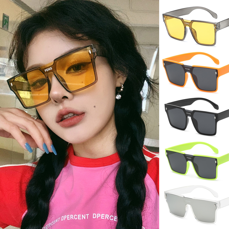 Detail Kacamata Hitam Hip Hop Warna-Warni Untuk Wanita Pria Bingkai Persegi Perlindungan UV