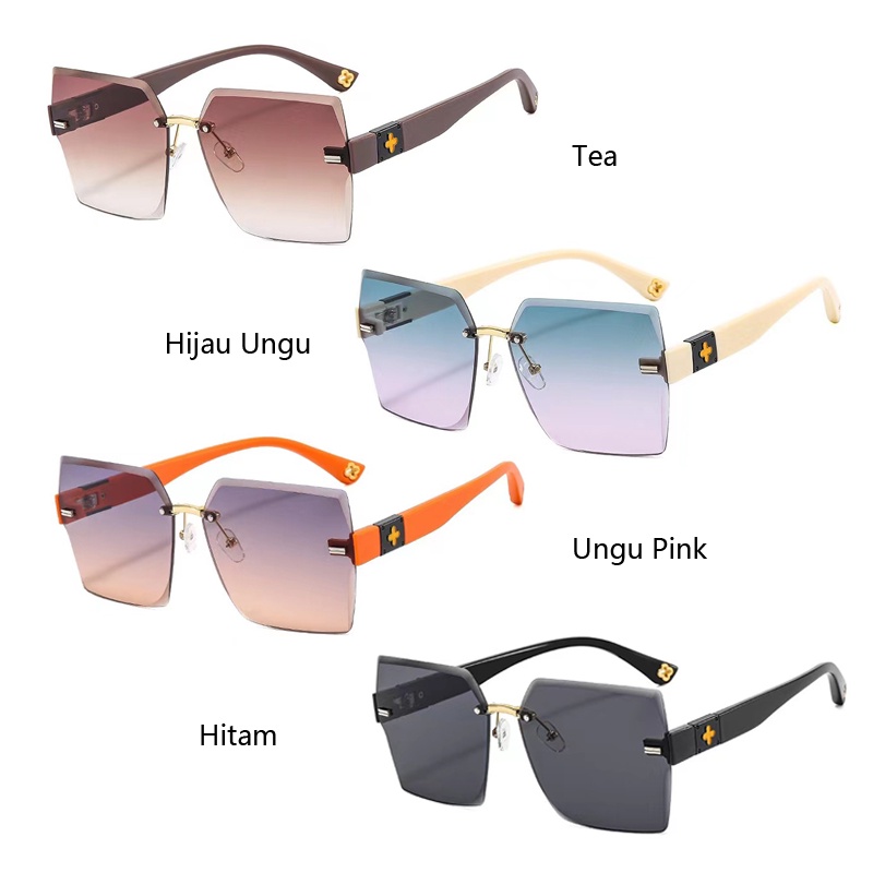 Detail Kacamata Hitam Pelindung UV Tanpa Bingkai Gaya Korea Untuk Wanita - Kacamata Hitam Warna Gradasi Dengan Frame Metal