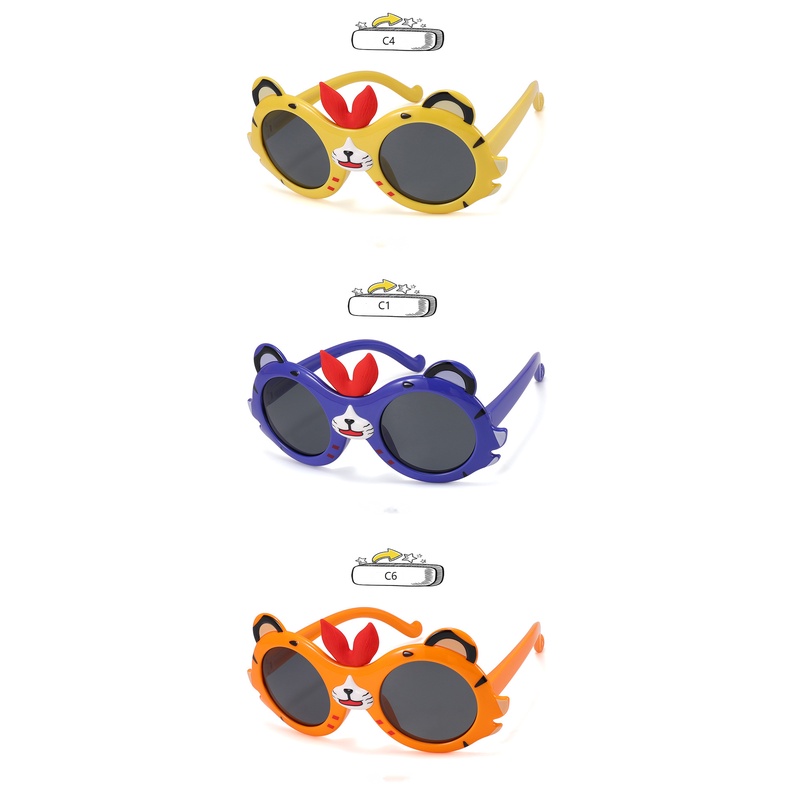 Detail Kacamata Hitam Polarized Kartun Untuk Anak-Anak Bingkai Silikon Berbentuk Macan