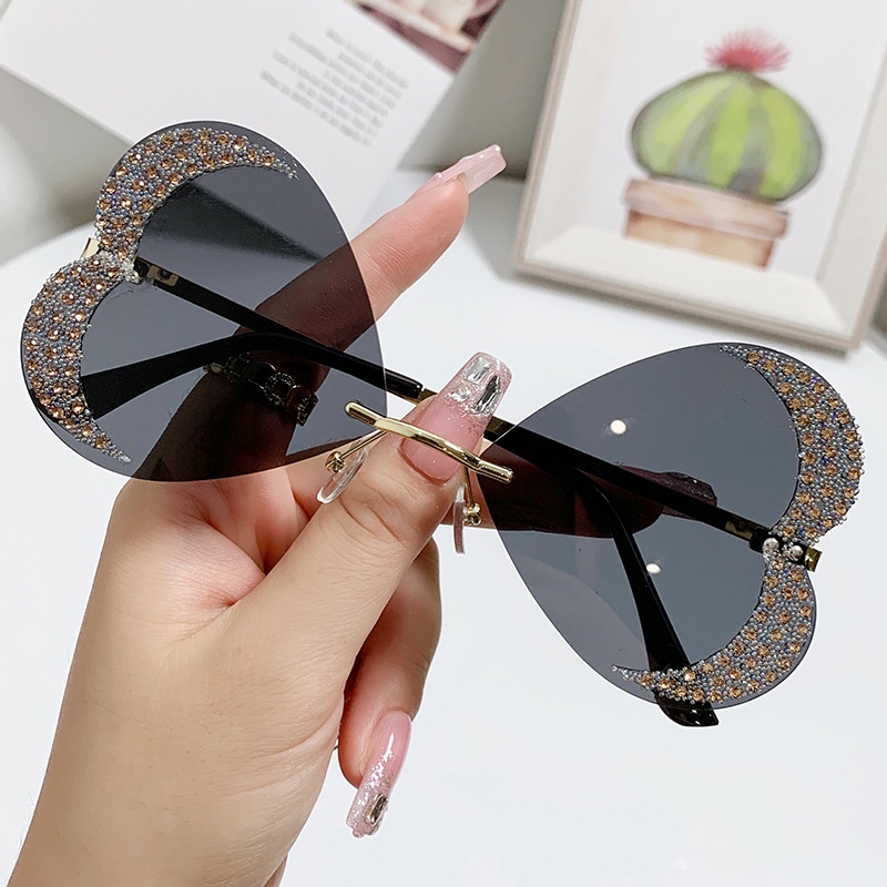 Detail Kacamata Hitam Tanpa Bingkai Bentuk Love Untuk Wanita Colorful Ocean Piece