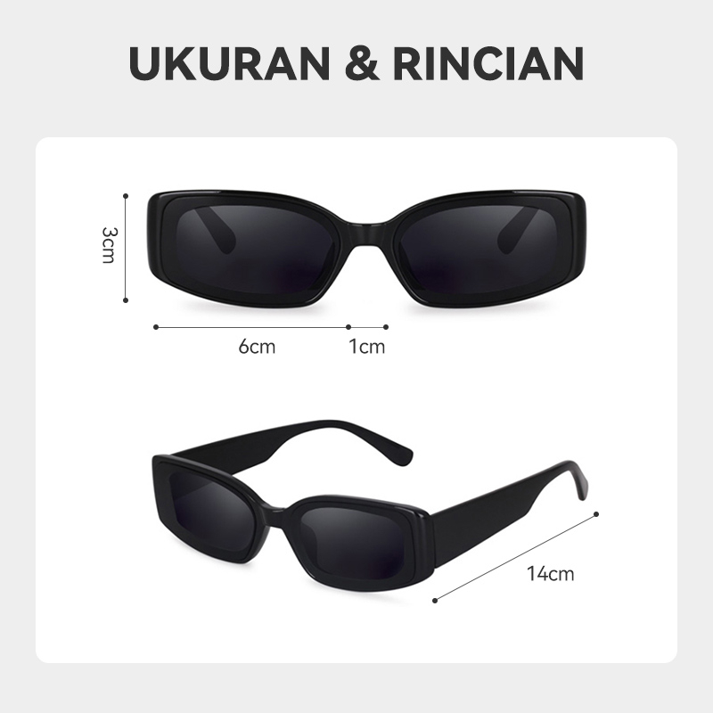 Detail Kacamata Hitam Trendy Pria dan Wanita Bentuk Persegi Panjang Kecil Vintage Style Sunglasses Fashion Import