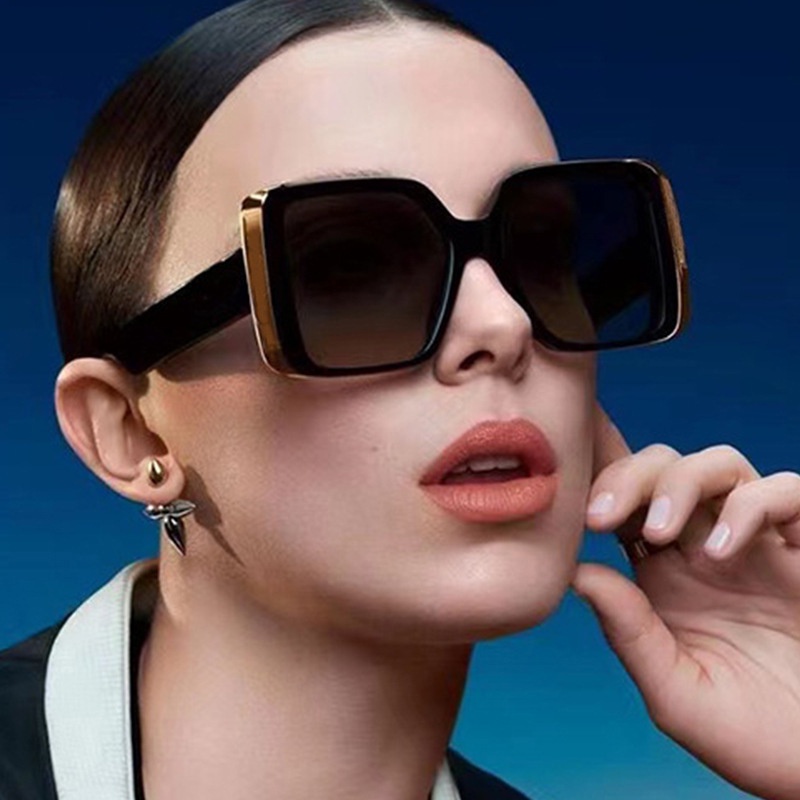 Detail Kacamata Hitam Wanita Model Simple Frame Kotak Warna Emas Untuk Outdoor