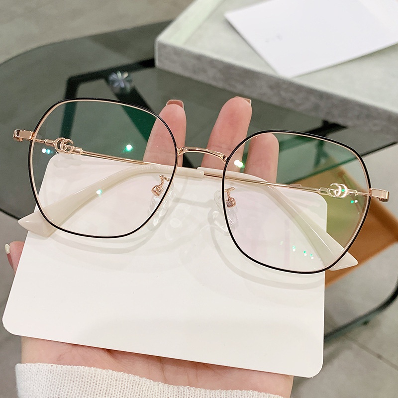 Aksesoris Fashion > Kacamata & Aksesoris > Frame & Lensa Kacamata > Kacamata Korea Anti Radiasi Untuk Wanita Oversize Bingkai Logam Lensa Yang Dapat Diganti