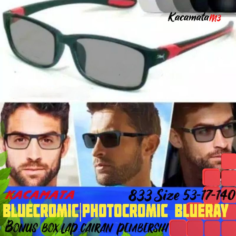 kacamata lensa bluecromic atau photocromic blueray bisa normal minus plus cilinder tergantung permintaan sampai minus 5 cyl 2 harga masih sama tulis saja pesanan kaka di catatan saat order free box lap cairan pembersih kode 833 size 53-17-140