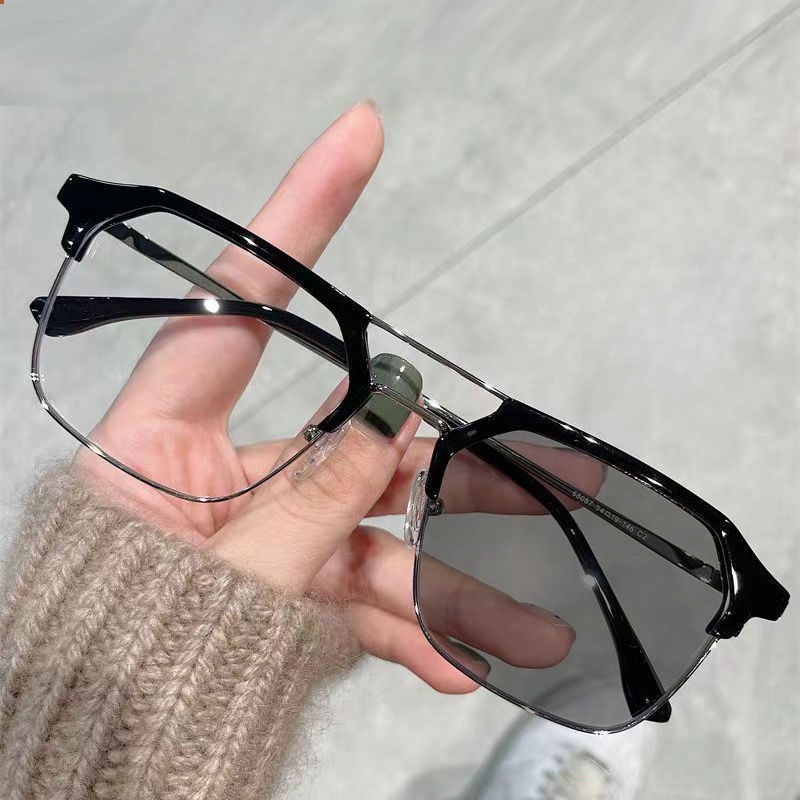 Detail Kacamata Photochromic Kacamata Anti Radiasi Metal Blue Light Blocking Retro Lensa Datar Perempuan/Pria Bingkai Polos