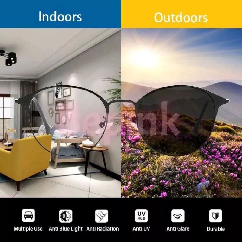 KACAMATA PHOTOCROMIC HALF FRAME BUNDAR GAGANG BESI (BEPINK OFFICIAL)