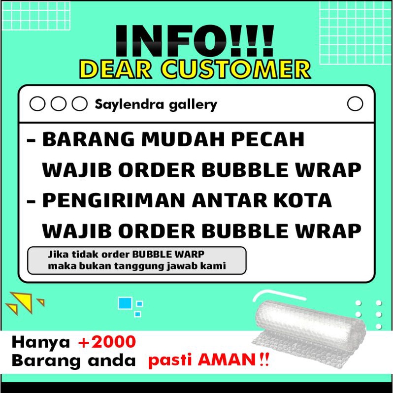 JANGAN LUPA MEMBELI TAMBAHAN PAKING BUBBLE WARP BIAR AMAN DI PERJALANAN DAN VIDIO UNBOXING WAKTU MEMBUKA PAKET SELAMAT BELANJA