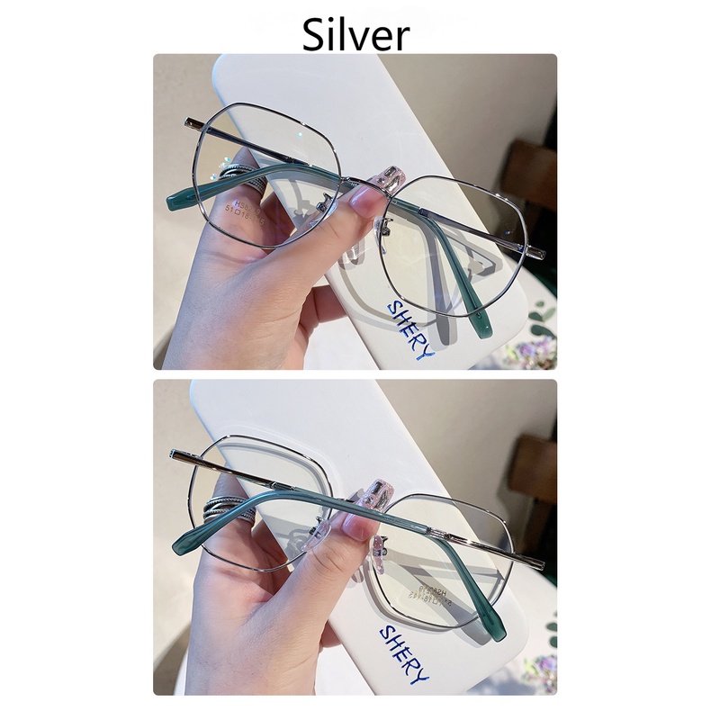 Detail Kacamata Poligonal Wanita Pria Kacamata Anti Radiasi Metal