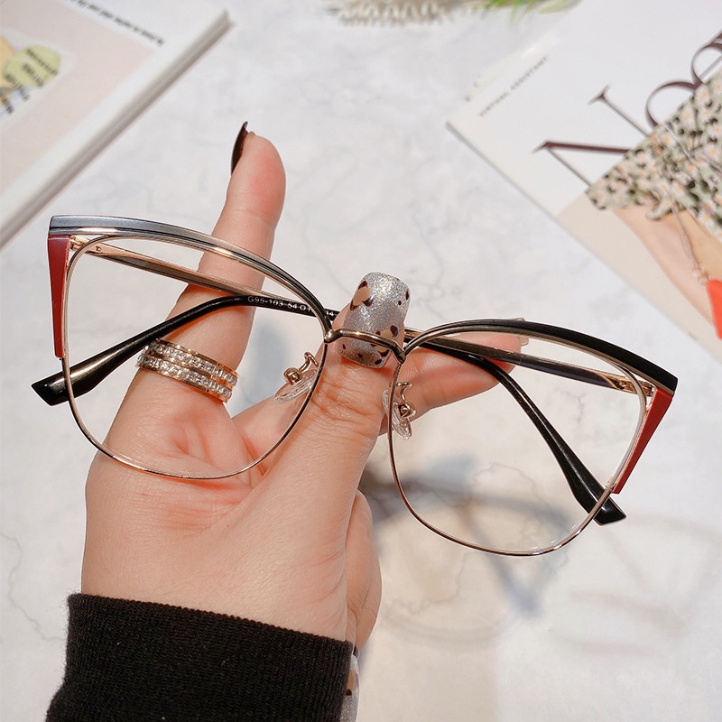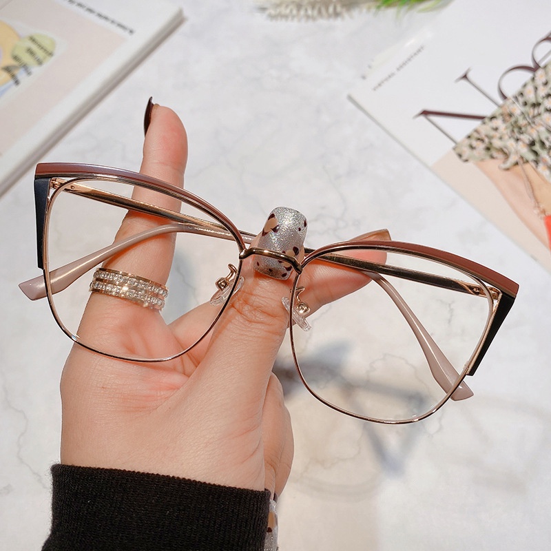Aksesoris Fashion > Kacamata & Aksesoris > Frame & Lensa Kacamata > Kacamata Retro Cat Eye Metal Anti Radiasi Untuk Wanita Pria Lensa Yang Dapat Diganti
