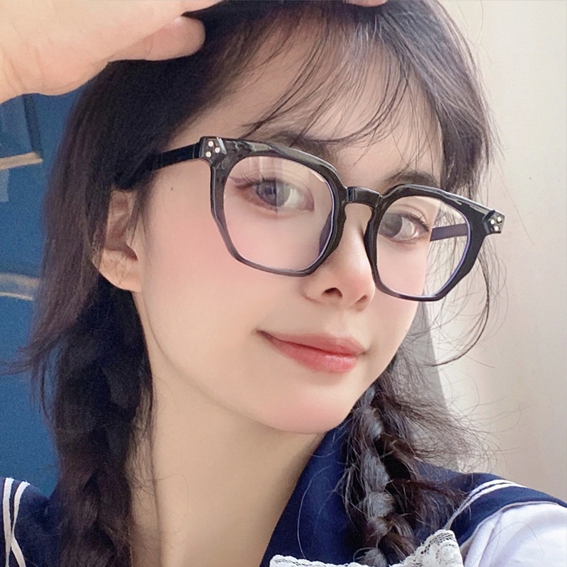 Detail Kacamata Retro Irregular Anti Radiasi Bingkai Poligonal Hitam Untuk Wanita Pria